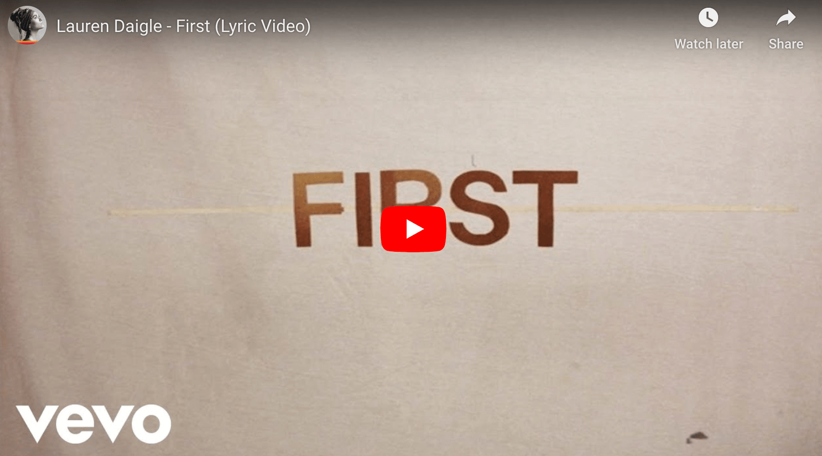 In ihm bist du vollkommen (siehe Kolosser 2:9-10), und in ihm lebst du, bewegst dich und hast deinen Platz (siehe Apostelgeschichte 17:28). Ich lade dich ein, ihn leidenschaftlich zu suchen und dich von ihm finden zu lassen, während wir dieses ausdrucksstarke Lied von Lauren Daigle hören, es heißt „First”.